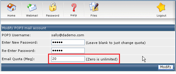 Setting up quota need to be done when there is an error while modifying the email quota in the DirectAdmin