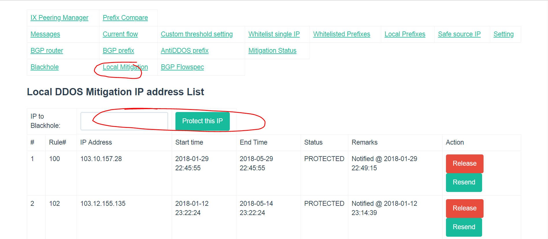 Once logged in, simply click on “Local Mitigation”, insert the IP in the box and click “Protect this IP”.