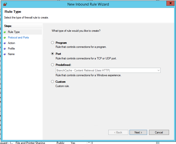 First, login into the remote desktop and search for the firewall setting. Then, click on “inbound rules” and add new rules.