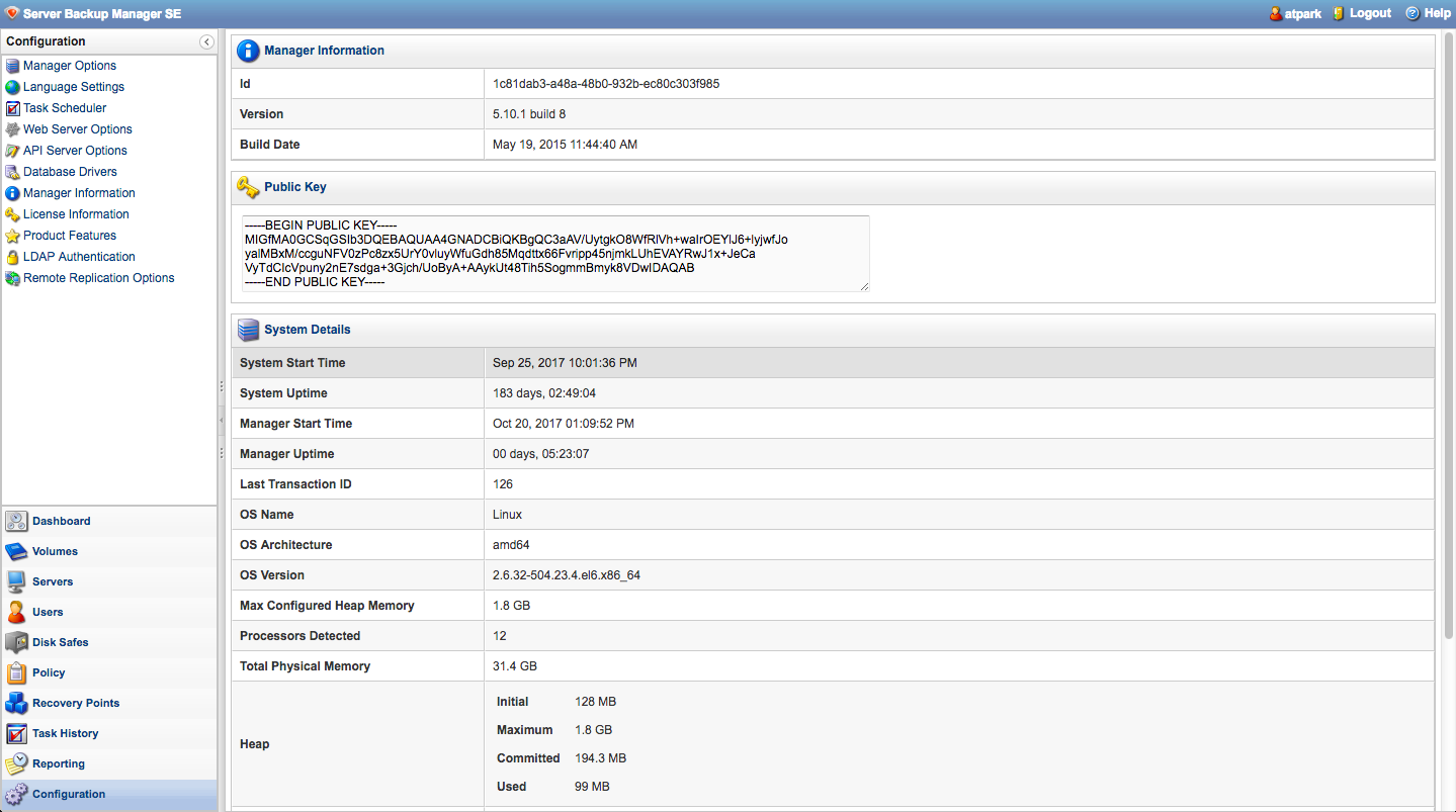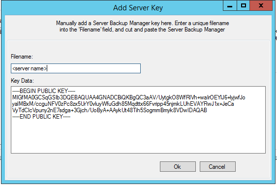 Note that you have to copy the public key in the Server Backup Manager SE of the server itself. Click “configuration” on the left side and copy.