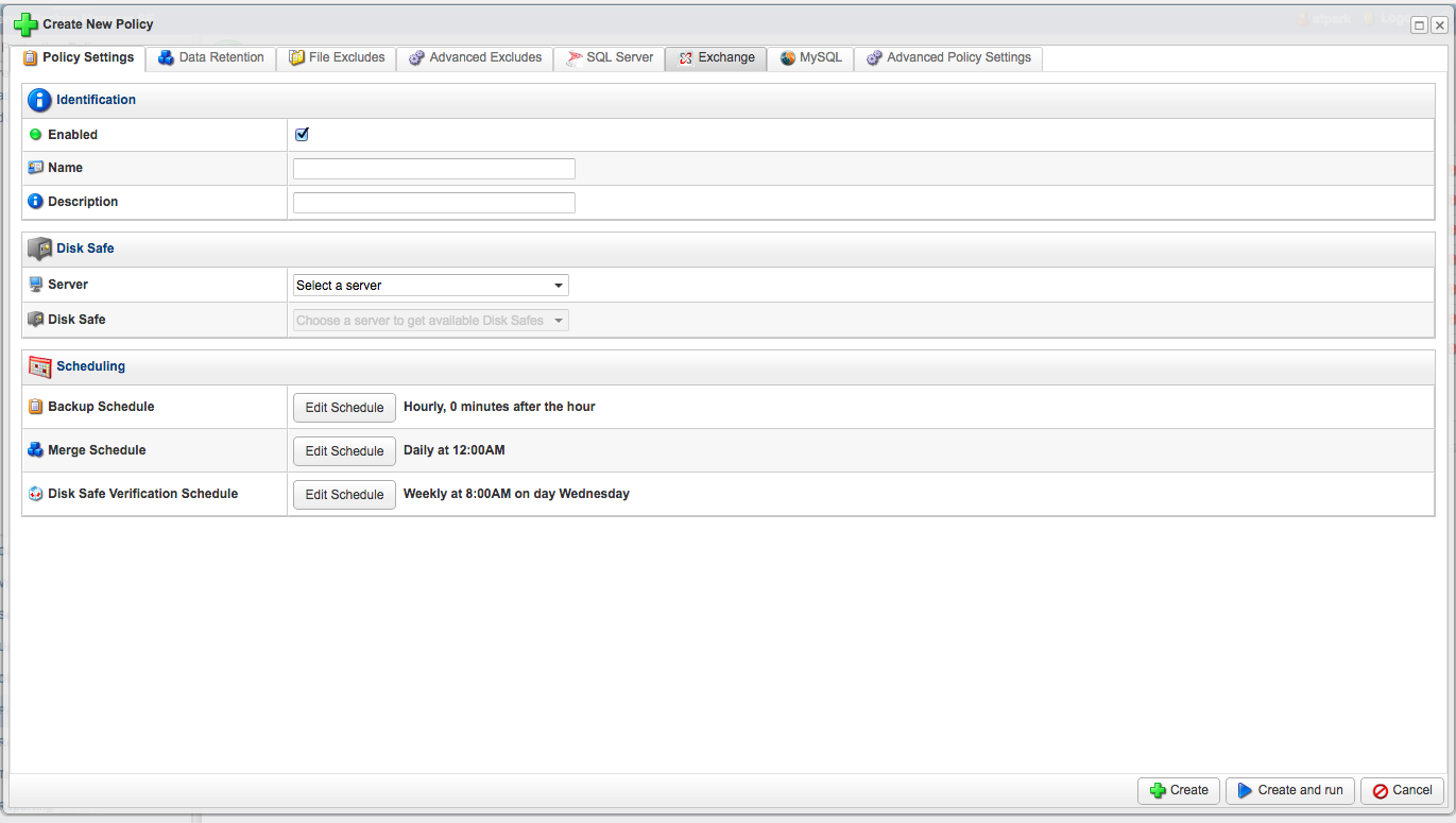 Lastly, click policy and create new policy. You can choose the time and date of when you want the backup to run on the server.