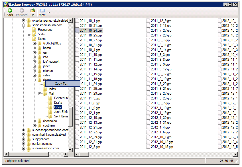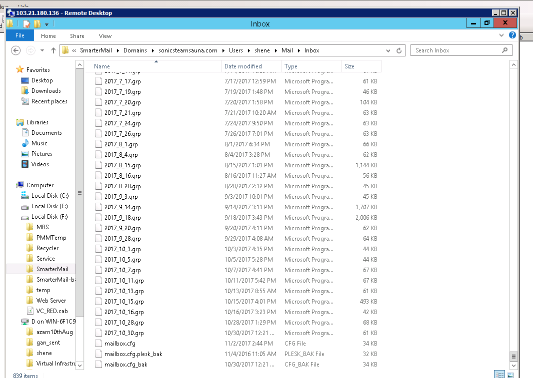 Using the IP address, Remote desktop to the Veeam client server and search for the domain. Once you have locate the email account that has been created (for example:shene), right click and copy the file to a new directory.