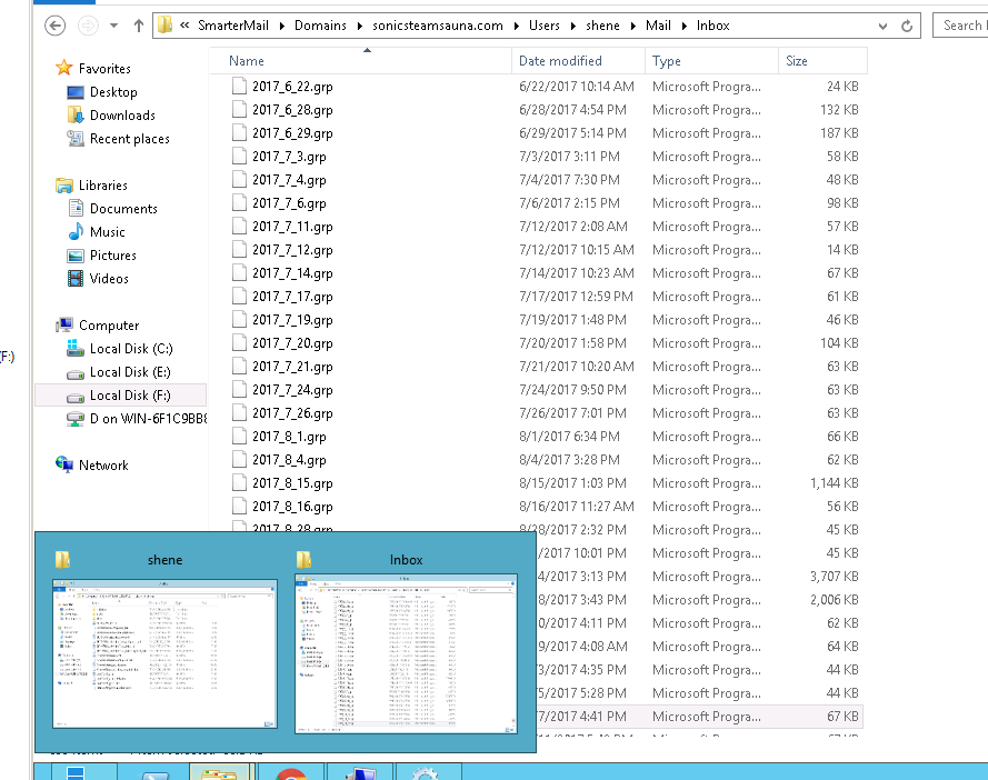 Once copied, stay inside the Veeam client and remote desktop to the selected server (for example here:WIN13.SMALL-DNS.COM). Next, inside the WIN13.SMALL-DNS.COM, open two tabs of file directory whereby the first file directory, search for the smartermail path and another tab is the directory file that you have copied previously.