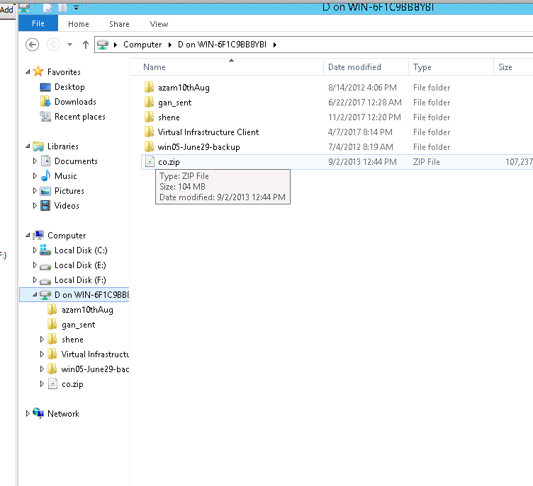 Inside the veeam client server, go to the user account folder created before and copy all the transferred files inside. (For example: folder shene)